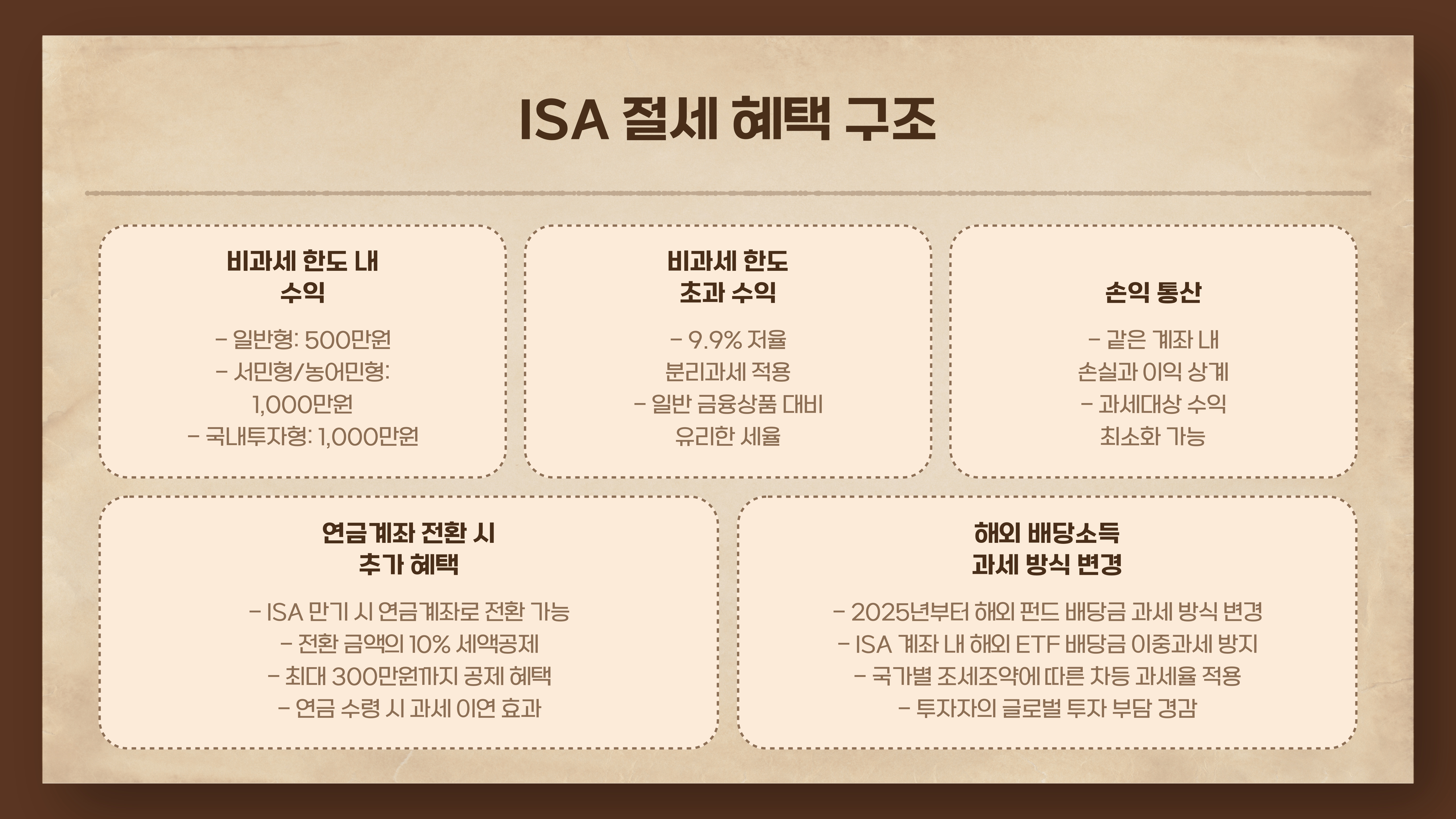 ISA 계좌의 절세 혜택은 다음과 같습니다: