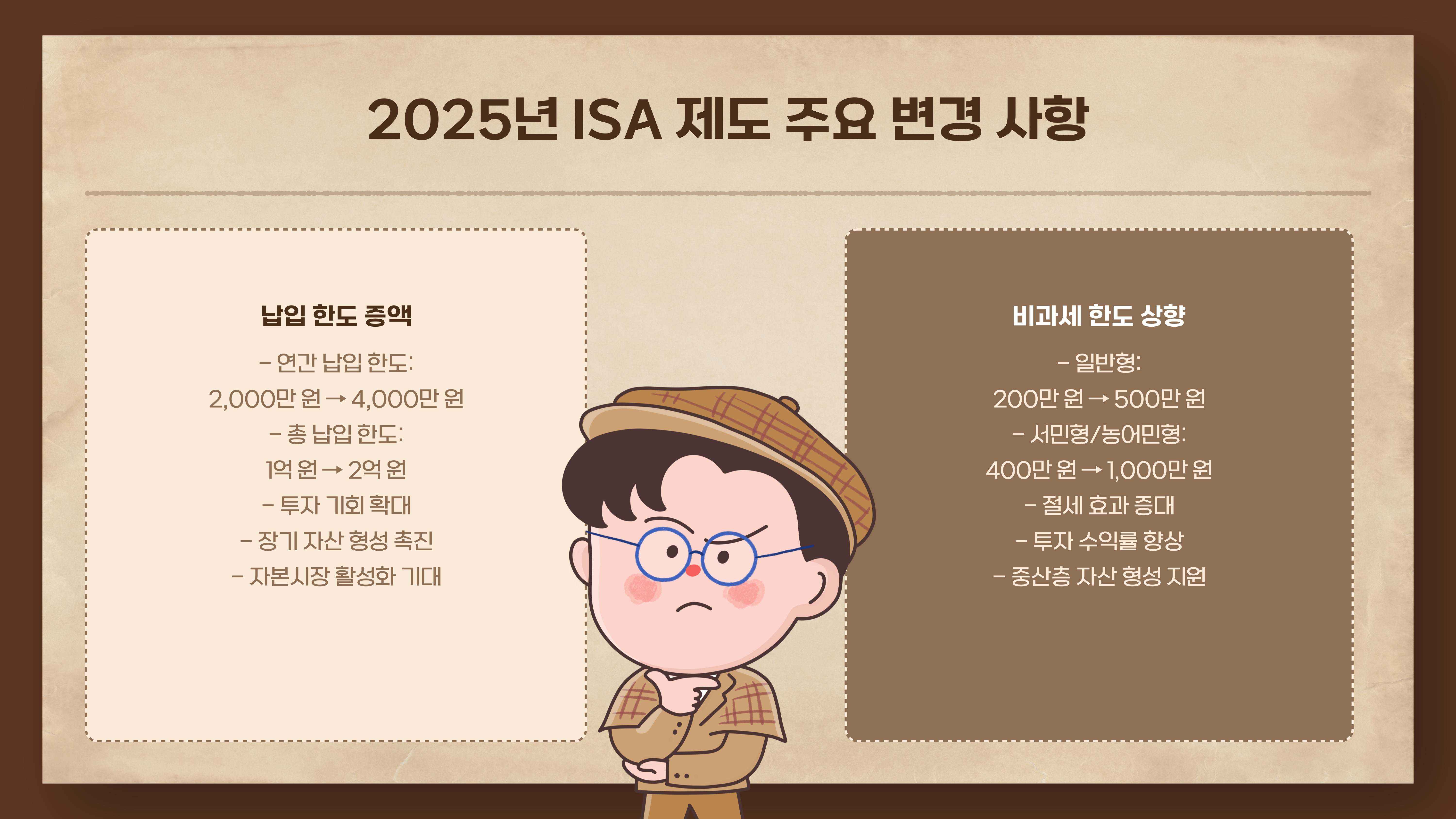 2025년부터 ISA 제도에 다음과 같은 주요 변경 사항이 적용됩니다: